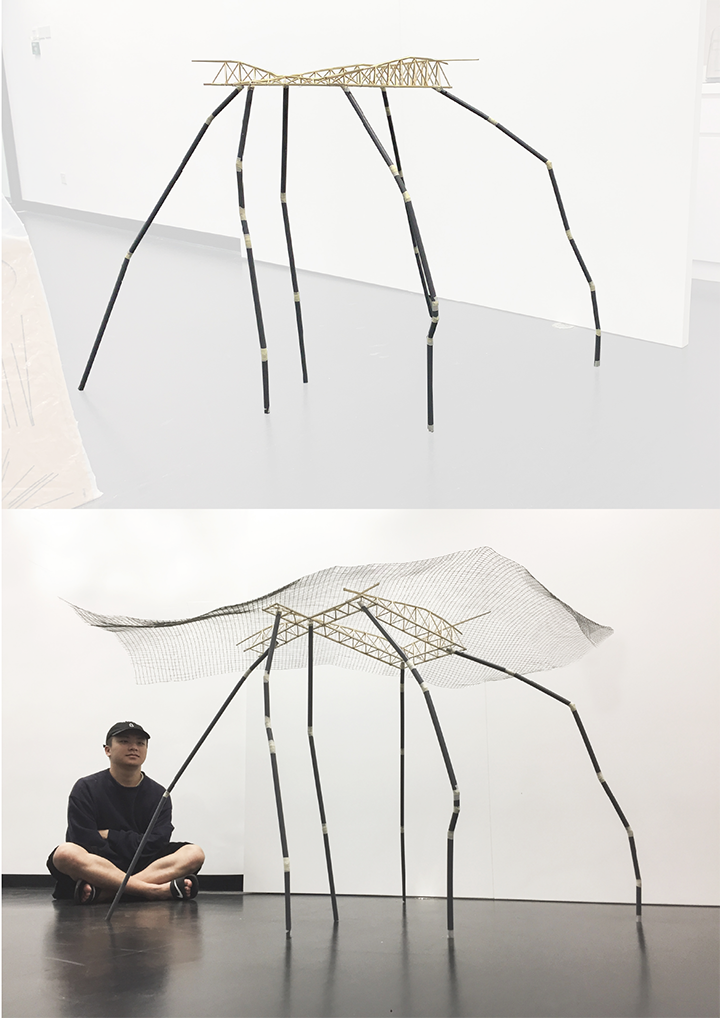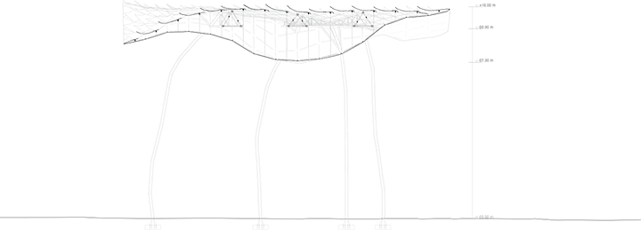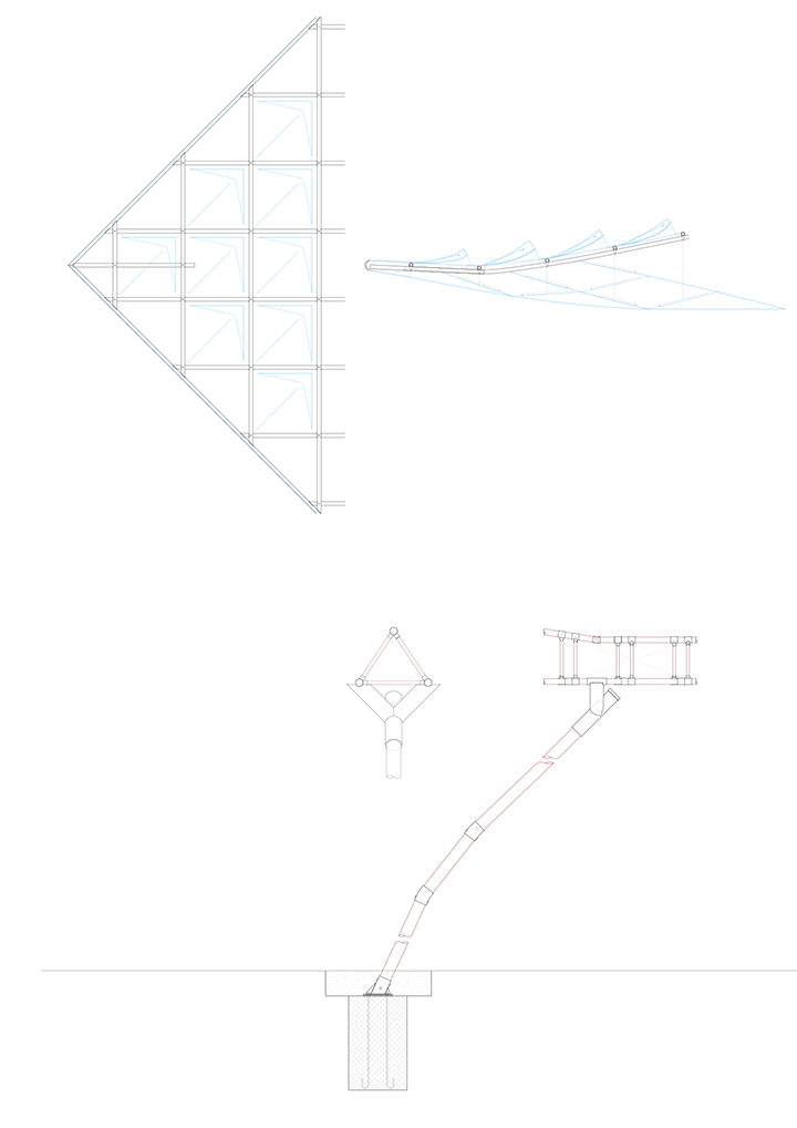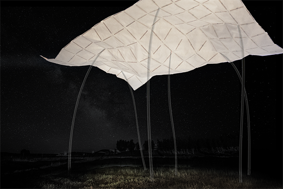 The project was initiated with our eager to own a piece of shade on the vast grasslands of the golf course in Pattaya. Through the building processes of this lightweight shelter, we would understand all that are at the core of sustainability - how structure reacts to sun, wind, water, fire and living creatures through time. We are proposing a lightweight structure that is 9~15 meters wide and 7~10 meters high. The canopy consists of an upper surface and a lower surface that would shade away the sunlight and move in motion when wind and water permeate through. The surfaces are considered to be made with fabric that could sensitively capture the shade of light from the environment. The lower surface are thought to be tied with LED sticks that determines the movement of the fabric and allows the surface to be hung away from the truss.