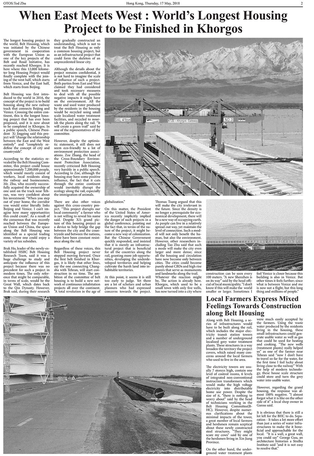 The longest housing project in the world, Belt Housing, which was initiated by the Chinese government in cooperation with the European Union as one of the key projects of the Belt and Road Initiative, has recently reached Khorgos. It is here where this 12,000 kilometer long Housing Project would finally complete with the joining of the west half, which starts from Venice, and the East half, which starts from Beijing.
