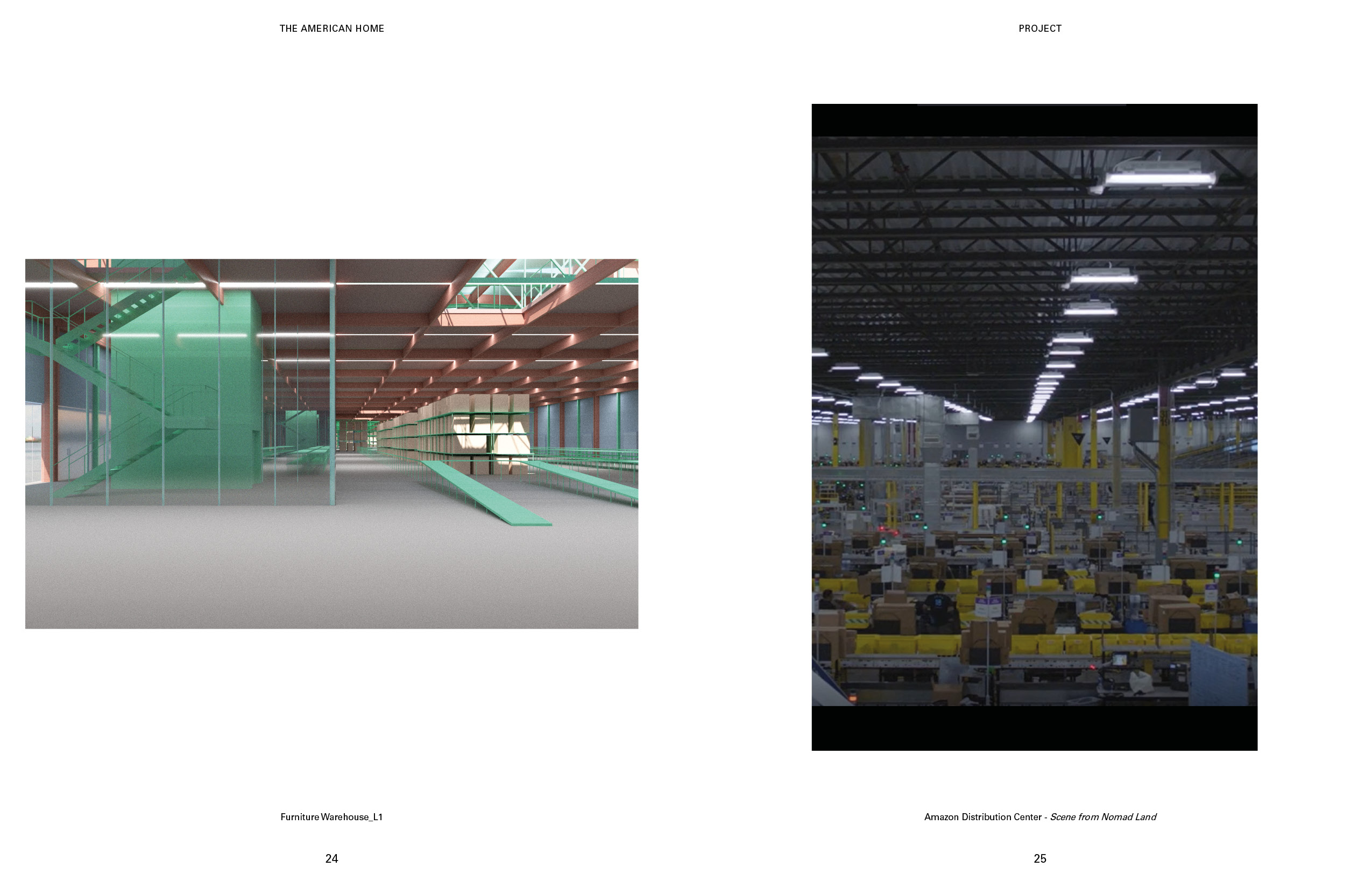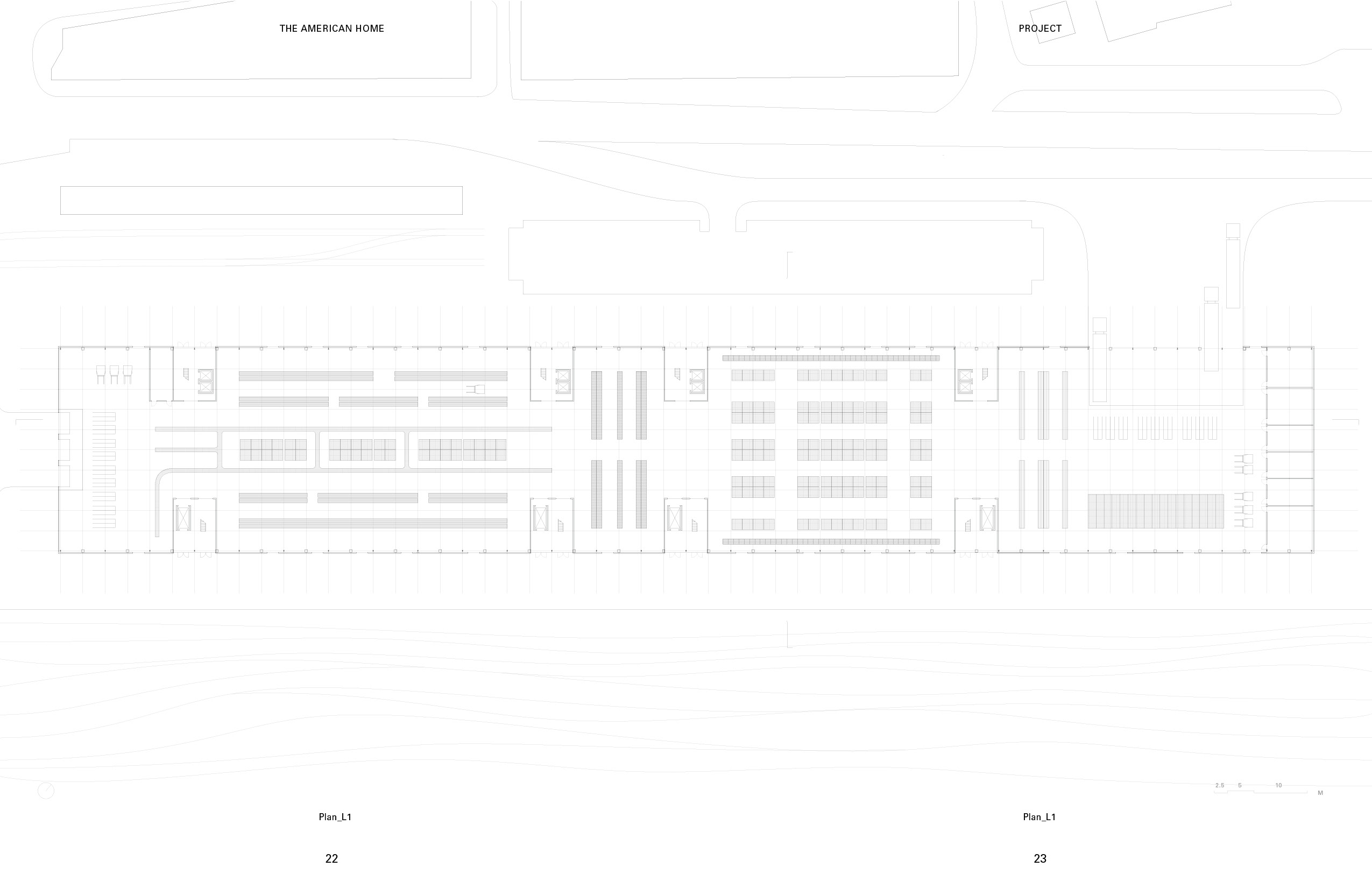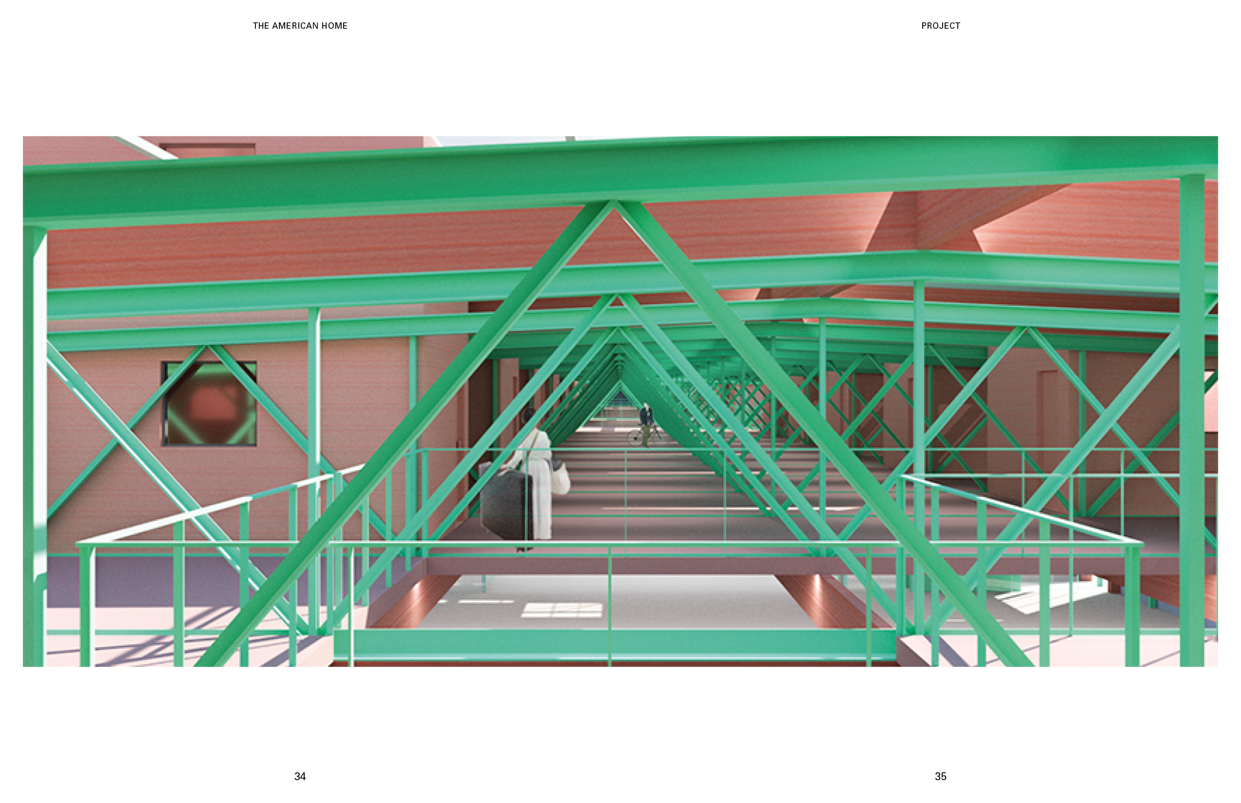 Furnishing and un-funishing the place have always been a problem for both the tenants and the property management. For the tenants, it takes so much money and time. For the management, the furniture from the old tenants often become large waste item hard to get rid of. On the left is a rendering of the warehousing I proposed as a solution to this problem. The pink towers and houses at the top are the residential units. The bottom level is the furniture storage and exhibition center. The program at the bottom provides the space and the infrastructure for storing the used furniture from the tenants that are moving out. After the new tenants signed the leasing contract, they can start furnishing the unit using the second-hand furniture from the furniture storage at the bottom. This combination of the programs could introduce a new system that is essential for promoting circular economy and avoiding single-use furniture, which could generate massive amount of waste. For the construction sequence of the transformation, the first step is to dismantle the envelope. After that, reinforcements would be added to every other truss to introduce a platform that sits at the bottom edge of the truss. Then prefabricated housing units would then be placed onto this platform. At the meantime, the corrugated steel sheets from the original warehouse would be repainted. The final step is to reinstall the repainted steel sheets back to the new mixed-use building. This system has to come from my observation of the relationship between the ultra efficiency-oriented plan of the distribution facilities, and the order of the housing types from the pamphlet, the shotgun house and the “father-son-holy ghost” house. The existing order of the wharf structure could be a nice site for potential re-exploration of some of the historic architecture typology from New Orleans. The plan and section of the shotgun house represents a clear construction logic and idea that used to be widely adopted in the area. I think these types have a lot of potential in the field of prefabrication. Therefore, in this project, I would like to propose adding an array of prefabricated housing units similar to the shotgun type on the top. Through overlapping the group of types with the exisitng efficient structural grid, I intend to create a new prototype for repurposing existing warehouse into mixed-use housing. The ground level of the warehousing is divided into four parts based on the flow of the cargos in distribution facilities. These sections are for cargo reception, sorting, compact storage, and distribution. The roof and the envelope of the transitional area between sections are made of glass panels, allowing natural light to shed inside. This area is also where the elevators to the upper level are located. The lifts for the tenants are located to the north, close to the tramway and the French market. The cargo lifts, on the other side, are along the south edge, close to the river. The new furniture and packages that arrives from the river can be moved upstairs to the housing level directly using the cargo lifts without interfering with the logistics of the storage or the tenants.